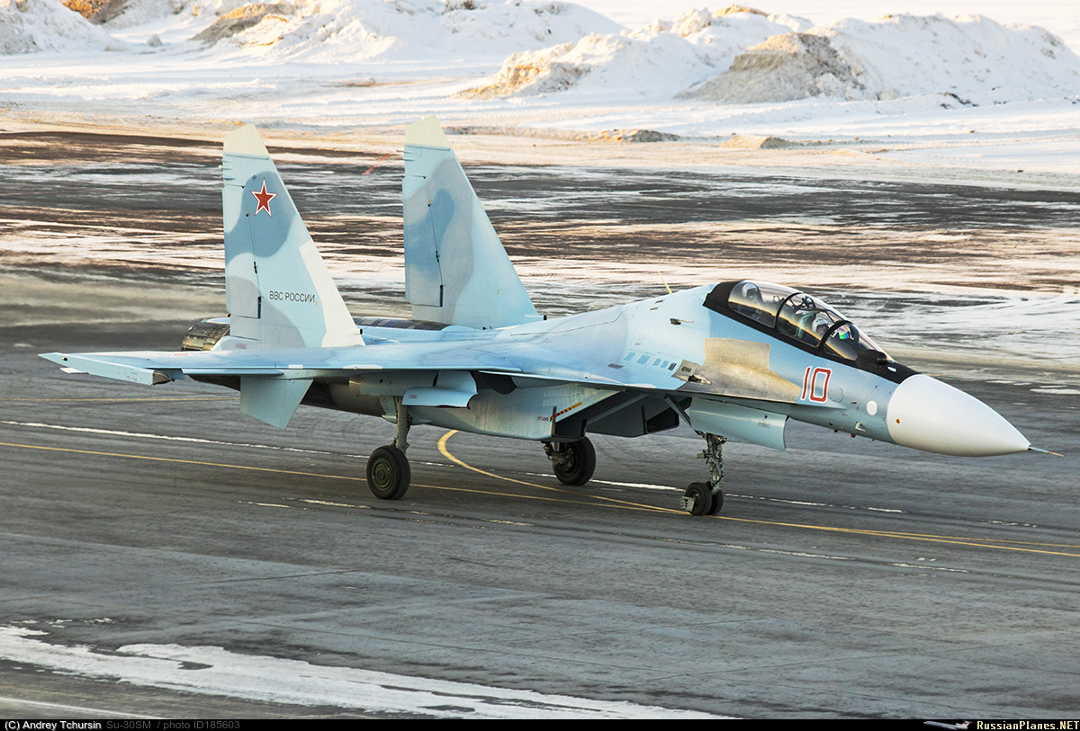 • Примечания: Корпорация «Иркут» в 2015 г. изготовила 31 серийный самолет Су-30СМ, из которых 20 предназначались для перевооружения истребительного авиаполка в Миллерово. На снимке – один из этих самолетов во время перегона с завода на аэродром базирования. ("Взлёт" №3, 2016)