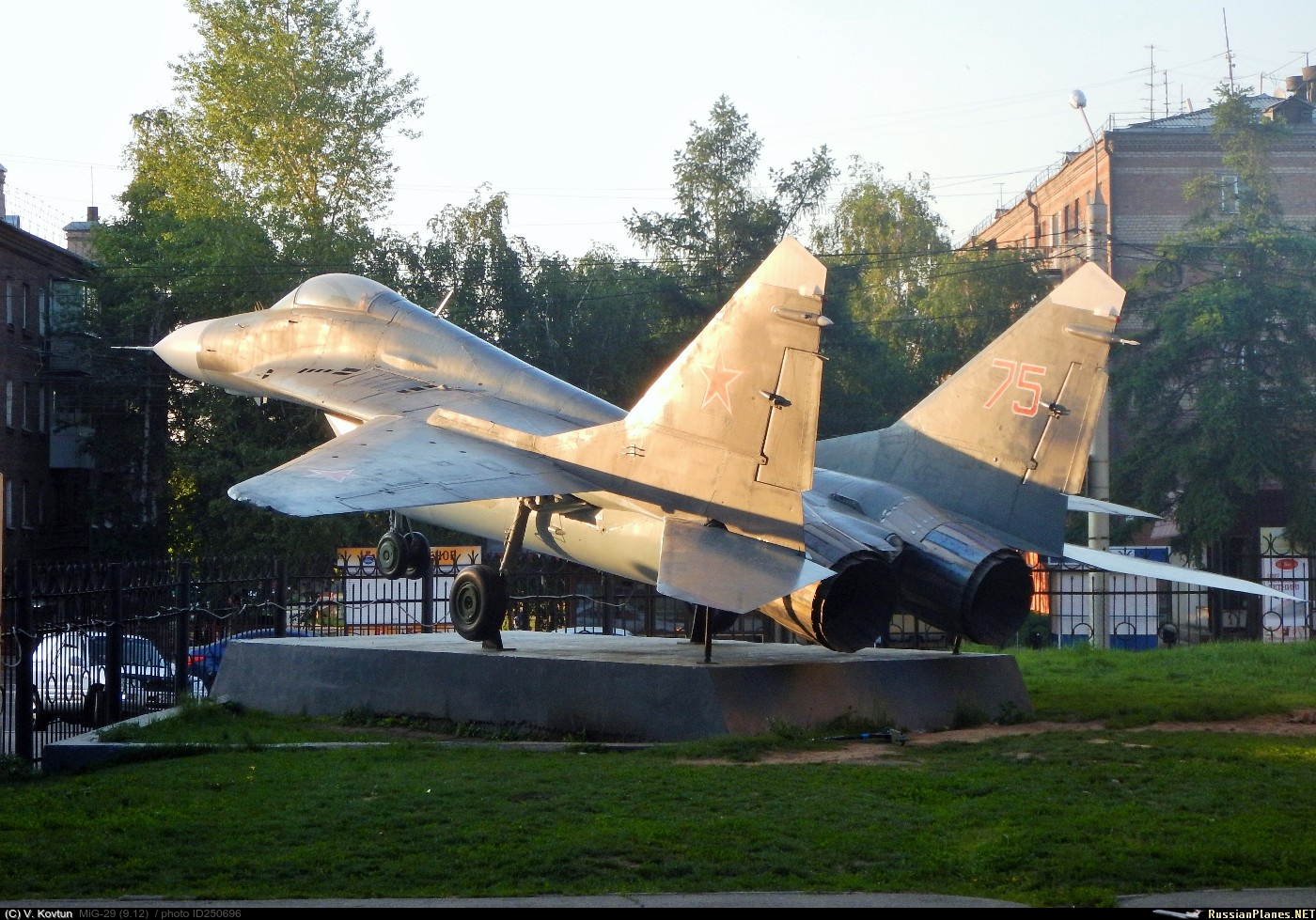 Установленный здесь самолет (заводской №2960518049) выпущен в 1985 г. Входил в боевой состав 53 иап (Шауляй), 404 иап (Орловка) и 120 иап (Домна). В 1998 г. передан училищу для практического обучения курсантов.