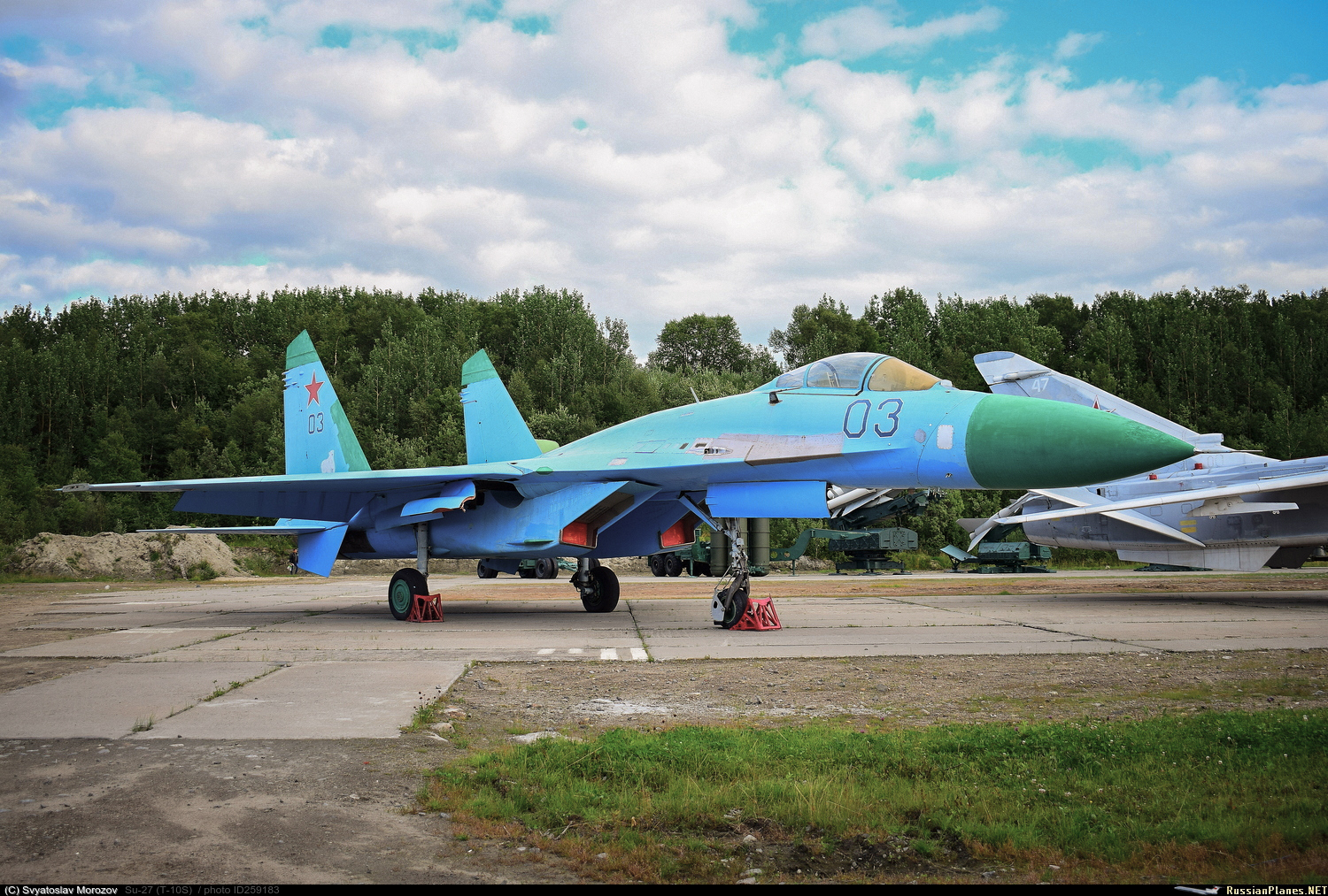 641 иап, с 01.09.1993 в 470 иап, имеет рисунок «бегущего волка», с 2001 г. в 9 иап, получил №03, после расформирования полка в 2010 г. оставлен на аэродроме, в 2016 г. перевезён в Сафоново в музей ВВС СФ, покрашен и установлен в виде памятника (б/н и эмблемы сохранены);