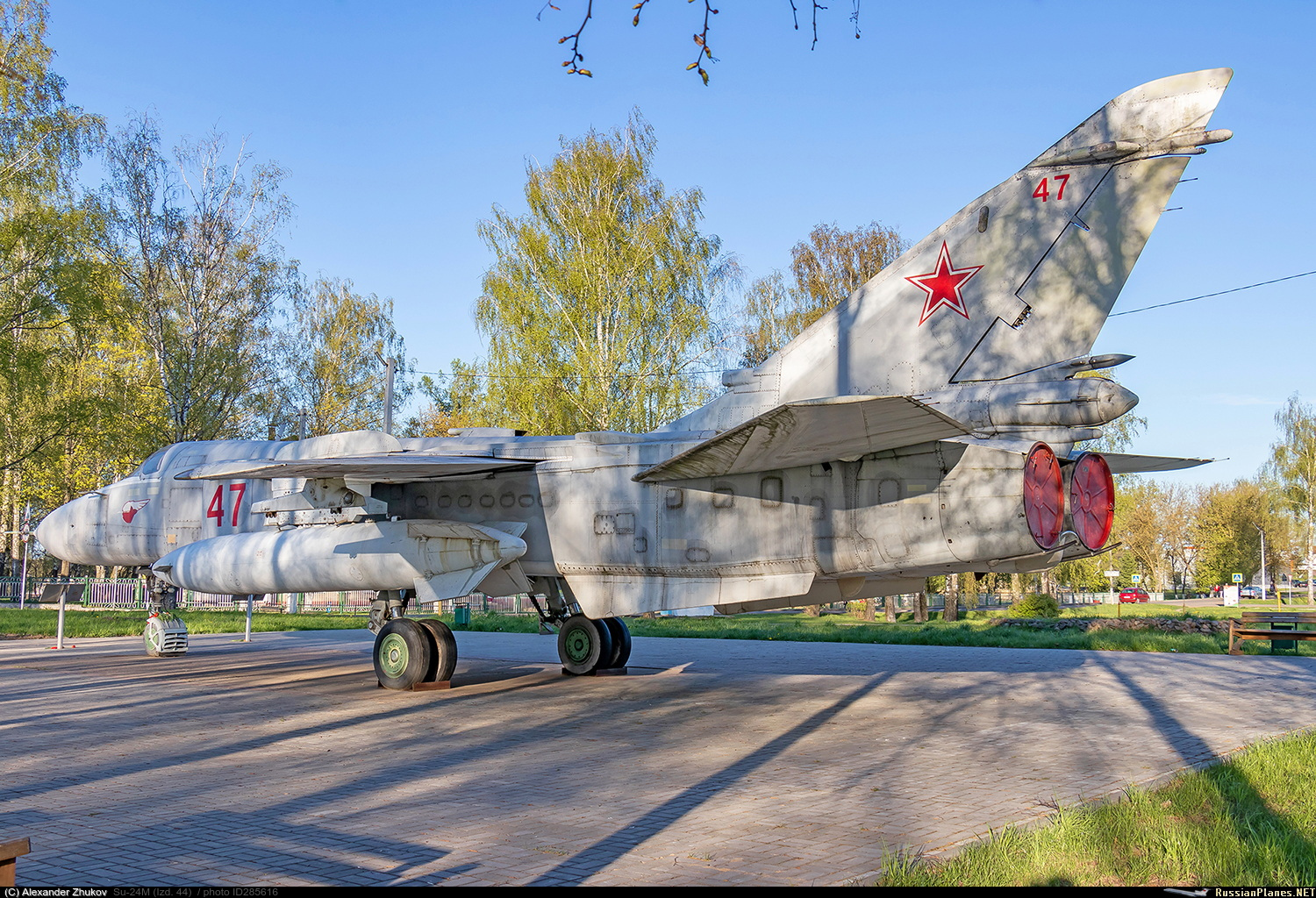 • Примечания: В районном центре Могилёвской области городе Быхов имеется 1 мемориальный самолет Су-24М. Су-24М – заводской номер 0815353, бортовой номер 47 красного (ранее белого) цвета. Корпус стандартной серо-голубой окраски. Установлен на площадке на въезде в микрорайон Быхов-1 — бывший военный городок базировавшихся до 1990 года в Быхове 170-го и 240-го гвардейских морских ракетоносных авиаполков 57-ой ракетной авиадивизии Балтийского флота. Су-24М находился на хранении в Барановичах и был доставлен в Быхов 28 февраля 2018 года. Самолет установлен как памятный знак в честь авиаторов, проходивших службу в 57-й Смоленской морской ракетоносной авиационной дивизии.