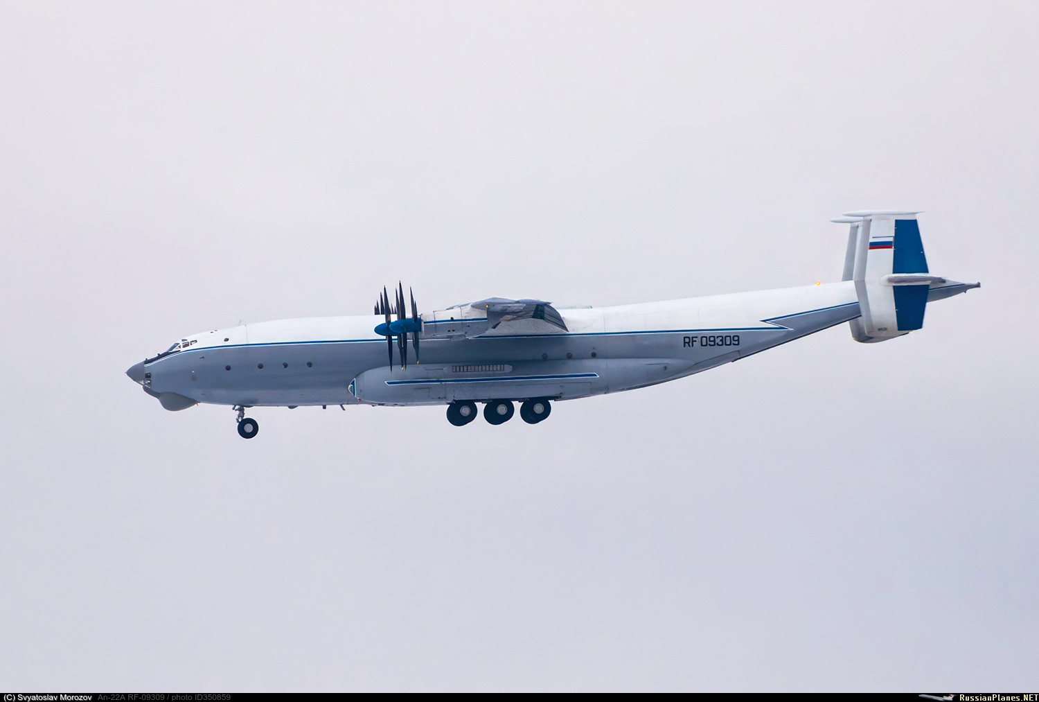 Единственный Ан-22, летавший в камуфляжной раскраске, за это ЛС дал борту название "попугай". С 2017 года в стандартной ливрее.