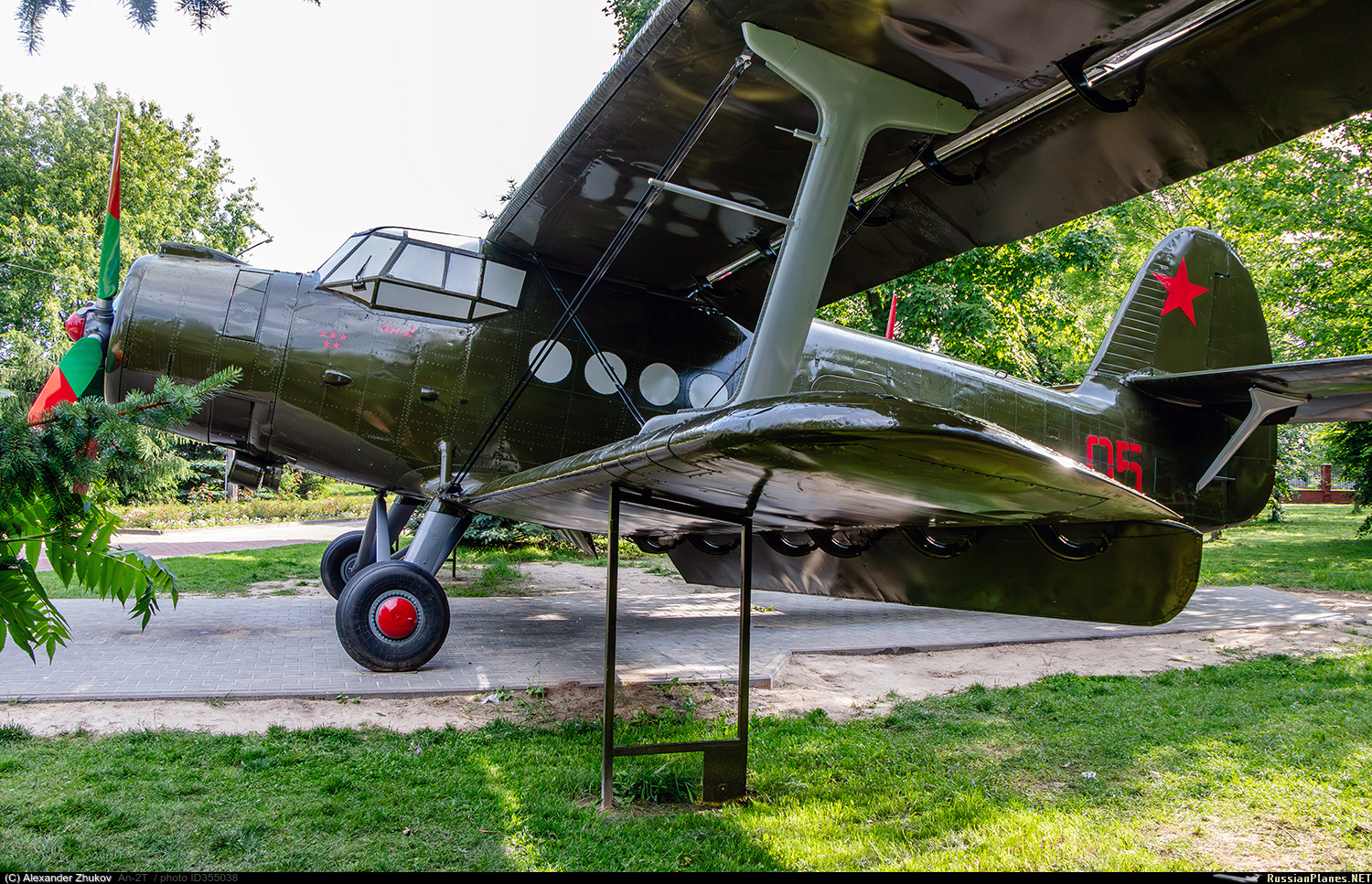 • Примечания: Установлен в районном центре Гомельской области городе Речица. Ан-2Т – заводской номер 1Г4214, бортовой номер «05» красного (ранее желтого) цвета. Построен в 1964 году на заводе PZL-Mielec. Эксплуатировался в Витебском аэроклубе ДОСААФ, с 1995 года находился на хранении. В 2025 году перевезен в Речицу. Реставрационные работы проводились на территории РУТТ РУП ПО «Белоруснефть». 5 мая 2025 года самолет перевезли в Парк Победы и установили на аллее Героев Великой Отечественной войны как основную часть памятной экспозиции в честь С.С. Гошко и всех авиаторов участников войны. https://aircraft-museum.ucoz.ru/index/gomelskaja_oblast/0-42