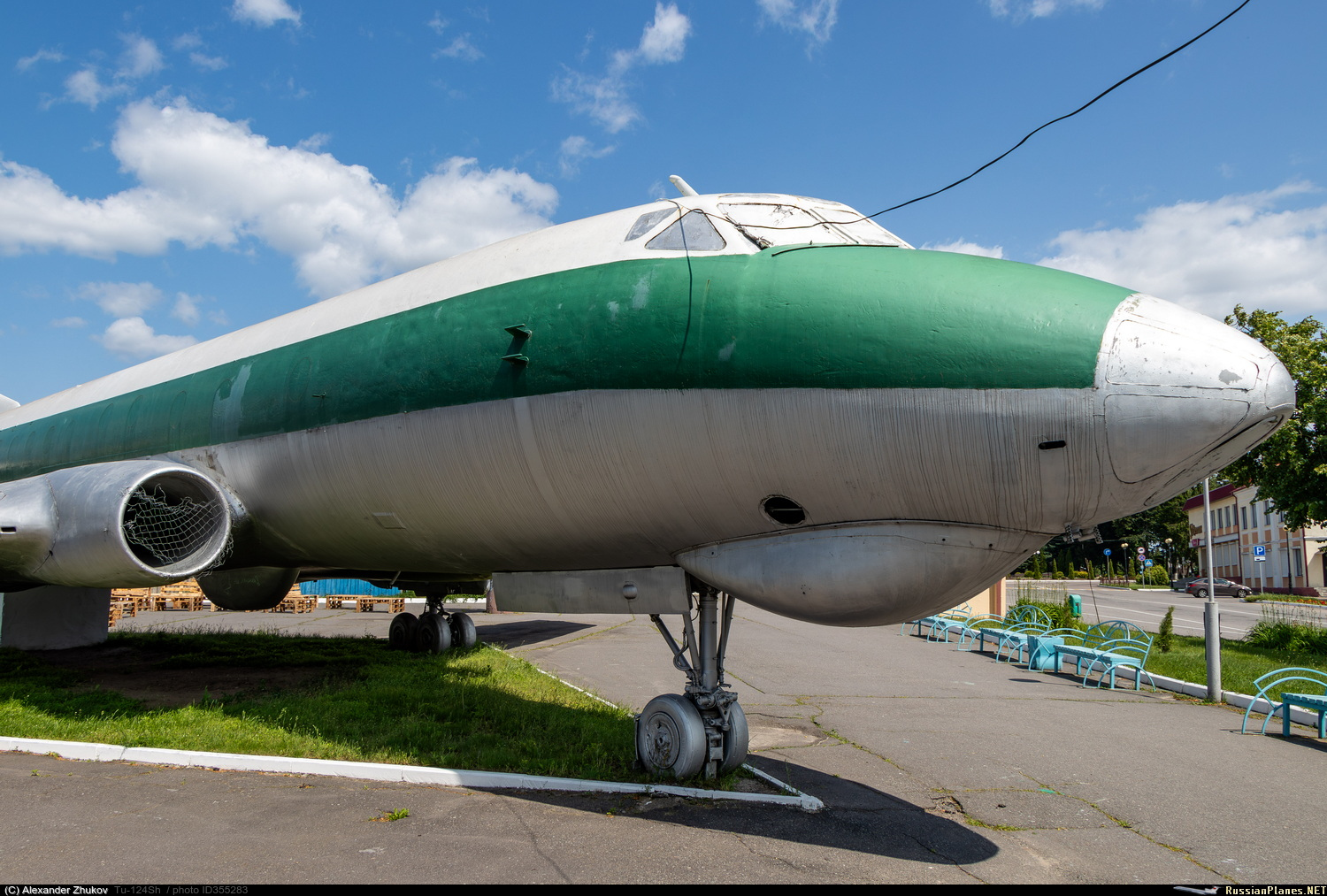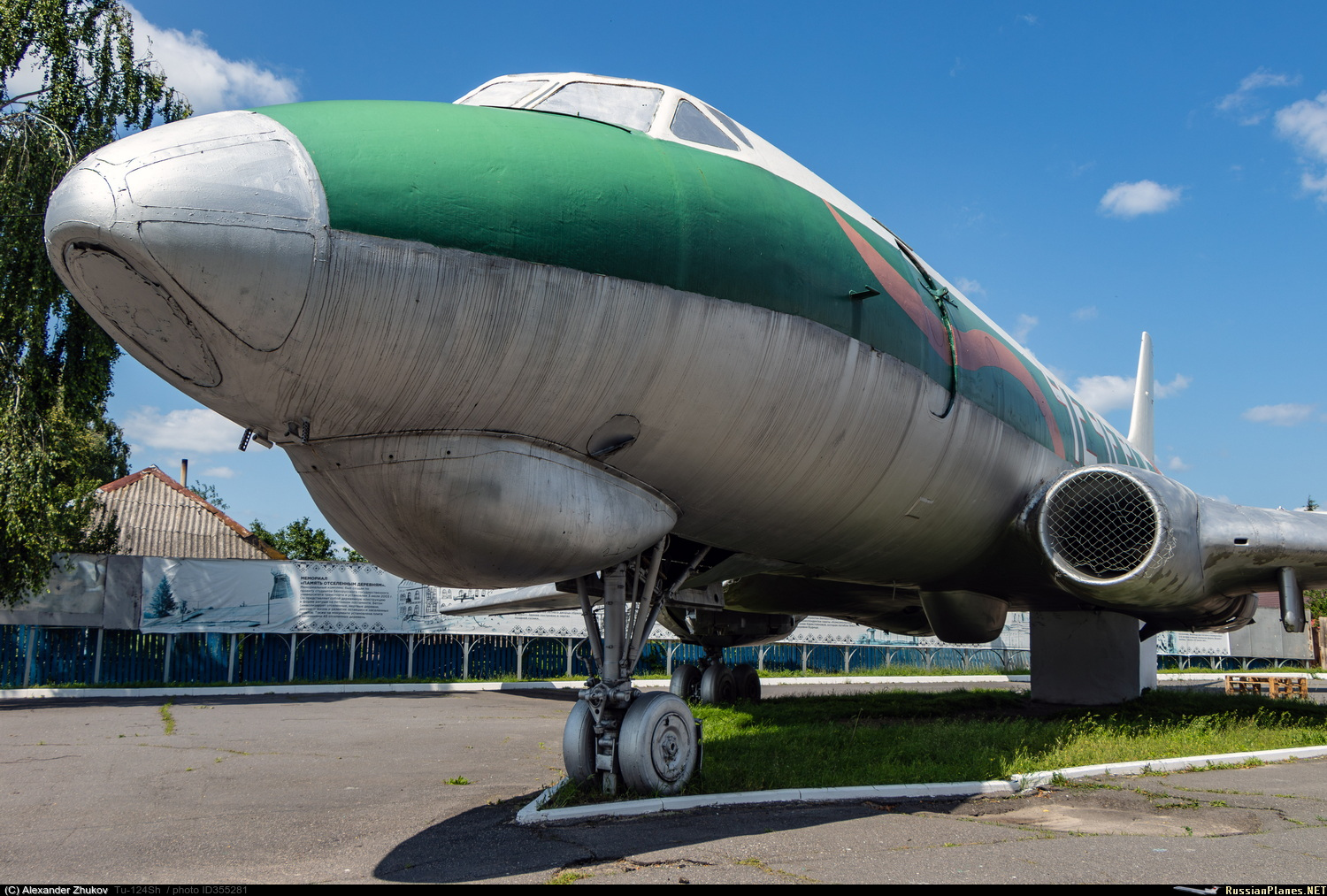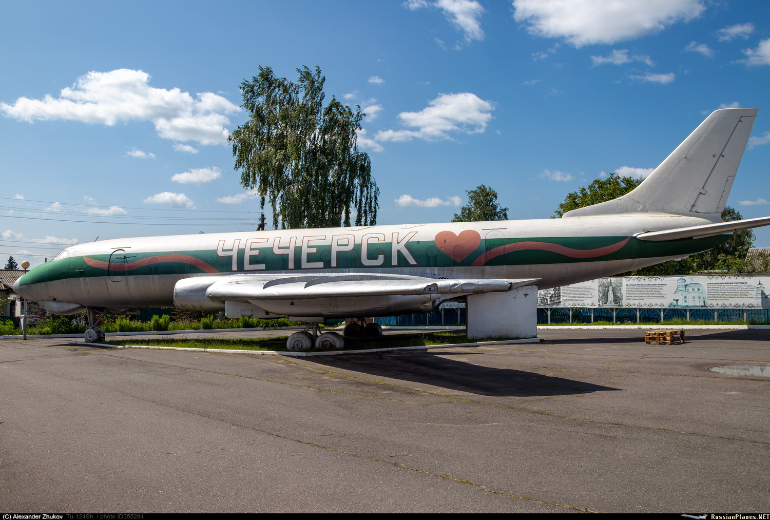 Ту-124Ш - бортового обозначения не имеет. Эксплуатировался на военном аэродроме Зябровка. Корпус – до 2010 года естественного цвета металла с продольными полосами белого, красного и голубого цветов, в 2011 году раскрашен в стиле граффити, затем (не позже 2014 года) перекрашен в серебристый цвет с двумя продольными полосами красного и зеленого цвета. Установлен в 1992 году на шасси на одной из площадей города, возле автовокзала. Самолет передали отделу культуры райисполкома и открыли здесь видеосалон, затем помещение занял детский центр игры и игрушки. https://aircraft-museum.ucoz.ru/index/gomelskaja_oblast/0-42 https://youtu.be/CNP6SlFZQ-4