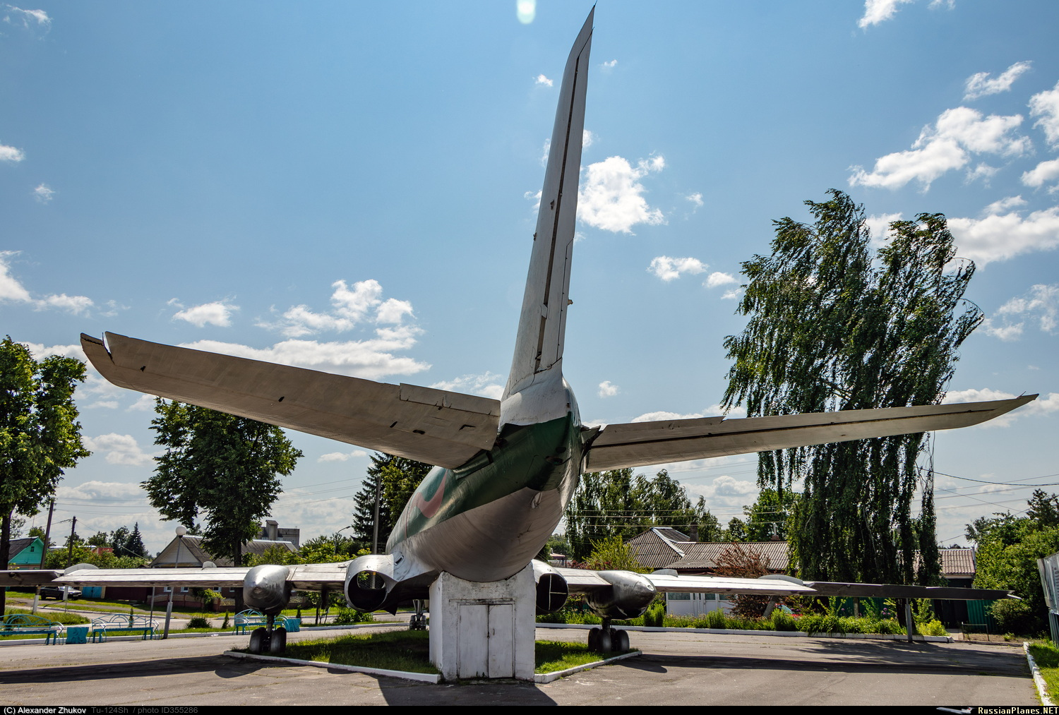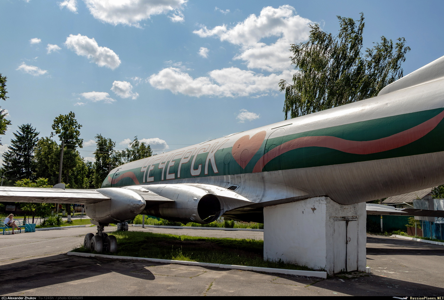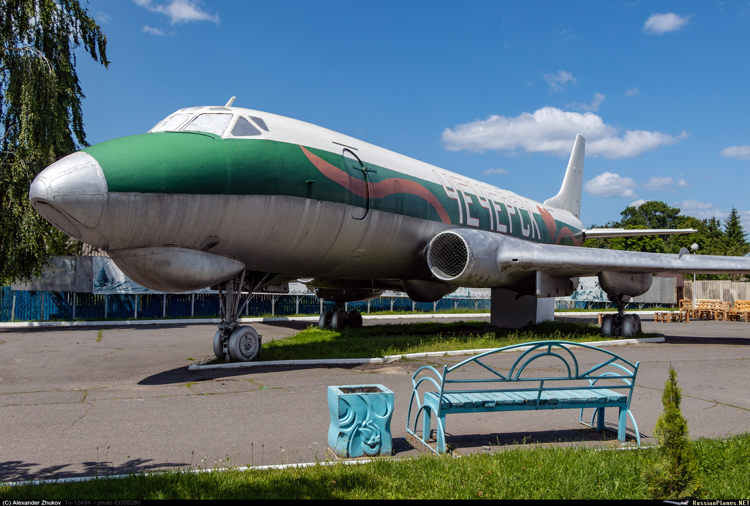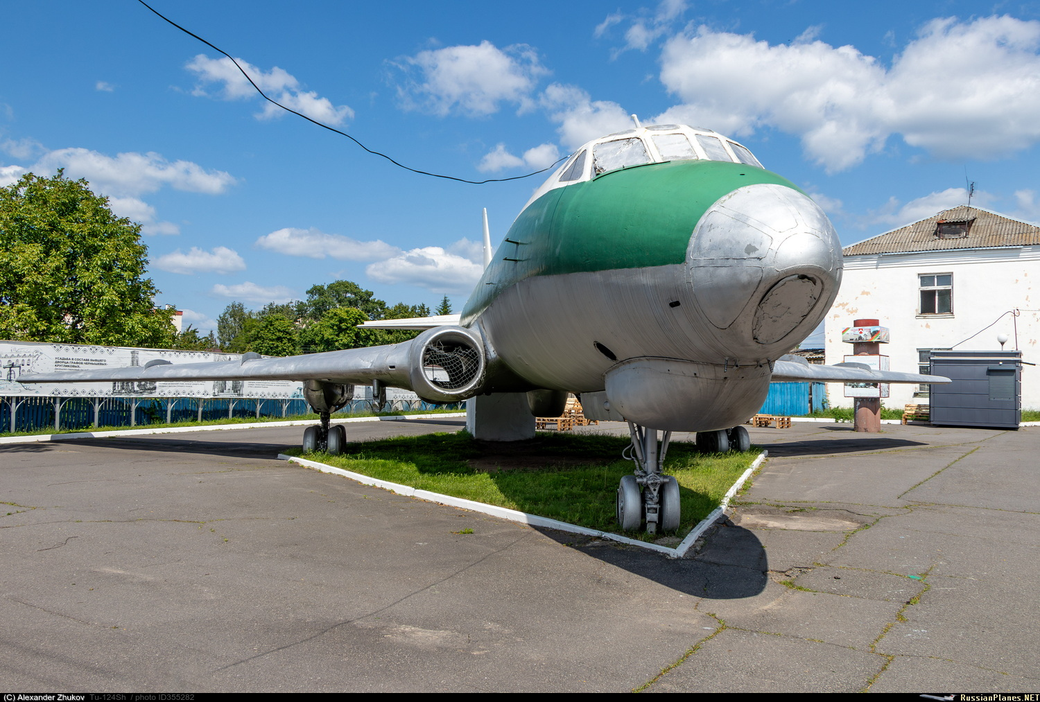 Ту-124Ш - бортового обозначения не имеет. Эксплуатировался на военном аэродроме Зябровка. Корпус – до 2010 года естественного цвета металла с продольными полосами белого, красного и голубого цветов, в 2011 году раскрашен в стиле граффити, затем (не позже 2014 года) перекрашен в серебристый цвет с двумя продольными полосами красного и зеленого цвета. Установлен в 1992 году на шасси на одной из площадей города, возле автовокзала. Самолет передали отделу культуры райисполкома и открыли здесь видеосалон, затем помещение занял детский центр игры и игрушки. https://aircraft-museum.ucoz.ru/index/gomelskaja_oblast/0-42 https://youtu.be/CNP6SlFZQ-4