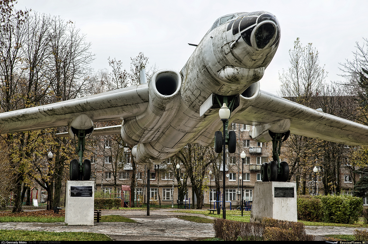 Ту-16 - бортовой номер 46 "красный", установлен в г. Смоленске, по ул. Багратиона в 1985 году. С инициативой о его установке выступило командование 46-й Воздушной армии Верховного главнокомандования (штаб размещался в Смоленске с 1946 по 1994г.), решив преподнести подарок жителям города. Возле самолета установлены две таблички, одна из которых гласит: «Жителям города-героя Смоленска от воинов-авиаторов 46-й воздушной армии ВГК СН» На двух опорах самолета так же нанесены надписи: ТТХ Ту-16 и исторические данные о памятнике. Примечательно, что самолет прилетел своим ходом из Эстонского Тартау, с промежуточной посадкой на военный аэродром в Болбасово, где его облегчили, сократили экипаж до двух человек и подготовили самолет для посадки на неподходящую для такого самолета ВПП аэродрома "Северный" г. Смоленска.