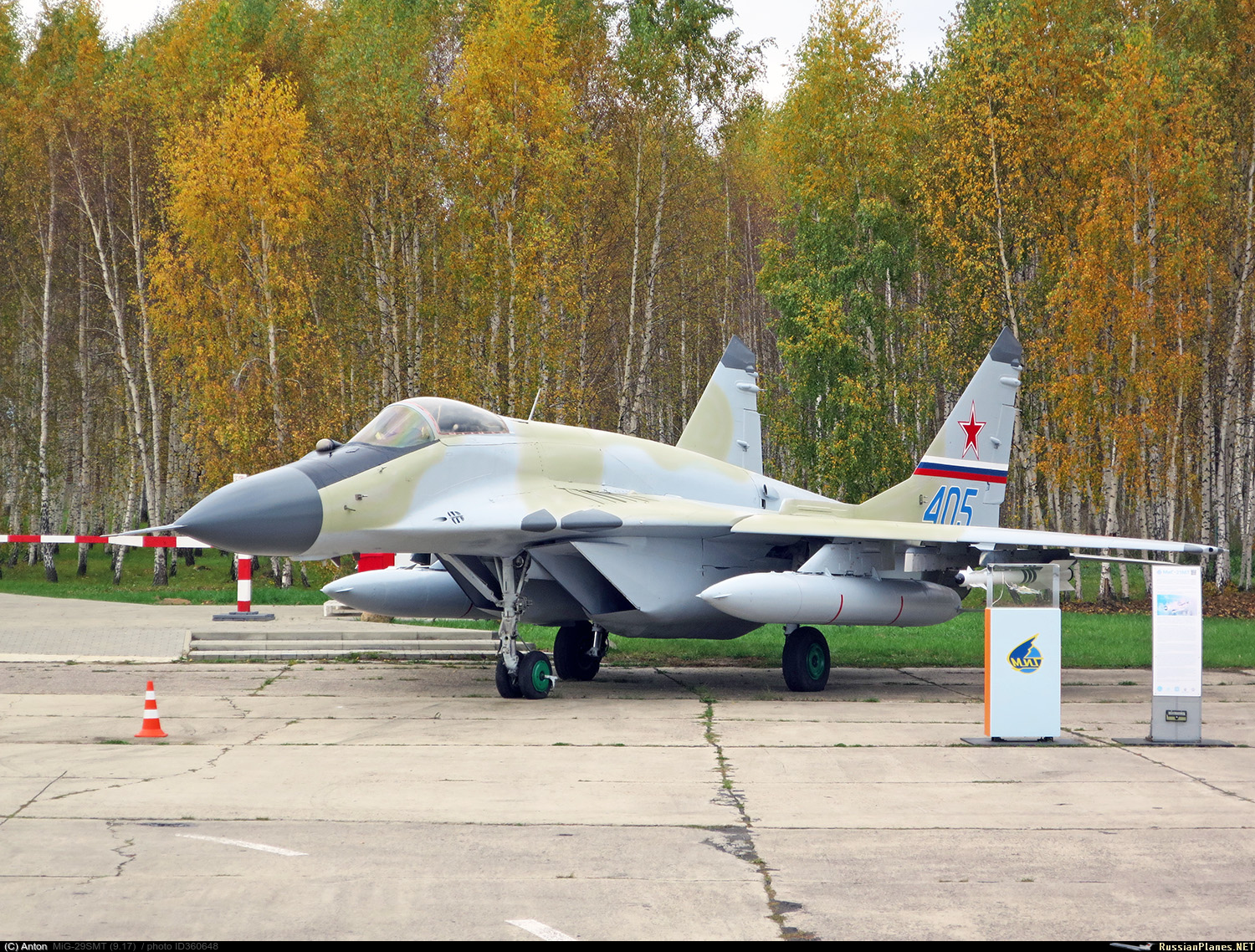 Первоначально это была обычная серийная машина модификации «тип 9.13», впервые поднявшаяся в небо 16 сентября 1988 года и принятая в эксплуатацию 30 сентября 1988 года под номером 05. Самолёт строили в одной производственной партии с машинами, предназначенными для строевого 642 авиационного полка истребителей бомбардировщиков, и поэтому он получил необычный зелёно-коричневый камуфляж. Для отработки новейшей системы управления вооружением СУВ-29С, способной применять новые ракеты Р-77, ставших нашим ответом на появление на американских истребителях F-16C ракет средней дальности AIM-120, борт «ноль пять» изъяли из поставки в ВВС и передали в КБ, где он был переоборудован в опытный самолёт №405. В сентябре 1991 года испытания были завершены с положительным результатом, и МиГ-29С (тип 9.13С) запустили в серийное производство. К этому моменту МиГ-29С №05 (405) выполнил 282 испытательных полёта с общим налётом 222 часа 41 минуту, в том числе несколько полётов на практические стрельбы, сбив 10 высокоманевренных мишеней типа «Стриж».