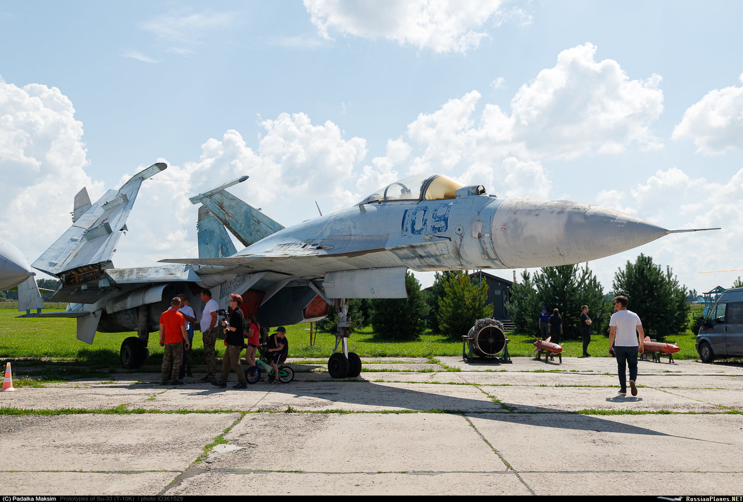 Т10К-9 №нет (27.03.1991), 11.1991 перегон из Крыма в Москву, далее «учебная программа» в Североморске, с 1993 г. участие в СГИ на базе ЛИИ, 28-29.05.1993 демонстрировался в Кубинке, в 1995 г. получил б/н №109 (нанесён только на левый борт, перед походом получил б/н и на правый борт), 12.1995 – 03.1996 дальний поход на ТАКРе, участник статических экспозиций МАКС`95` 97`99, последние полёты на выставке Геленджик`96, после перегон на стоянку ЛИиДБ в Жуковском.