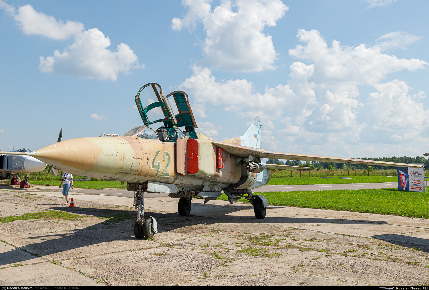 Благодаря содействию администрации Бабынинского района Калужской области и РОО АСК «Альбатрос Аэро», с 2023 года самолёт МиГ-23УБ №42 экспонируется в Авиапарке Орешково.