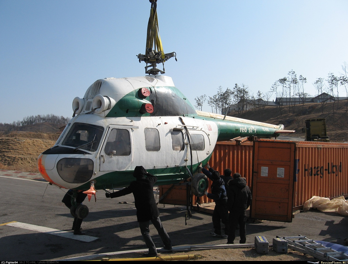 Выгрузка борта из контейнера в ЮжноКорейской авиакомпании Yecheon ASC. После покупки у Турецкой АК Red Star, еще в Турецкой регистрации.