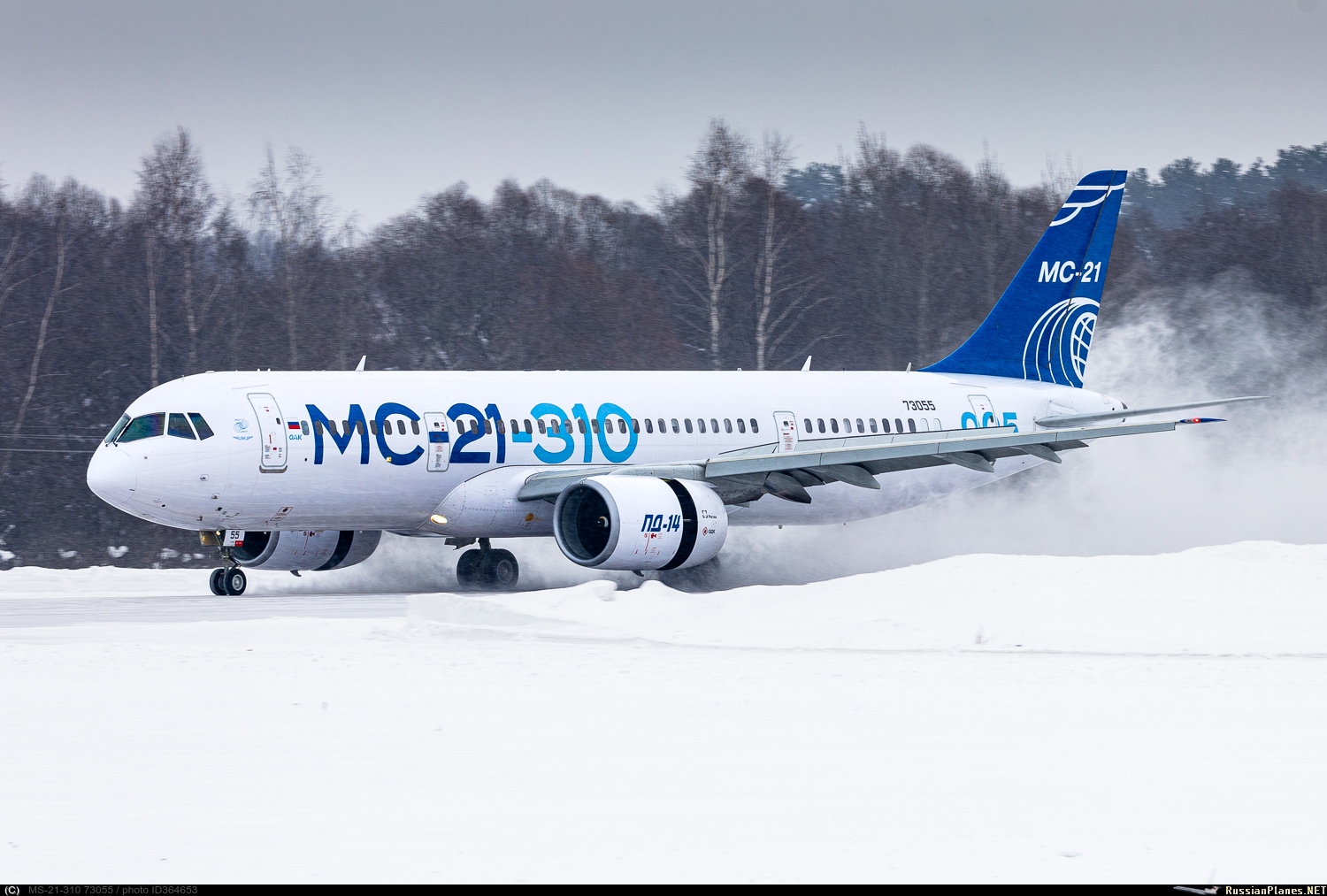 Госкорпорация «Ростех» 23 июля 2020 года сообщила об успешном завершении технологической установки новейших отечественных авиационных двигателей ПД-14 на опытный самолет МС-21-310.