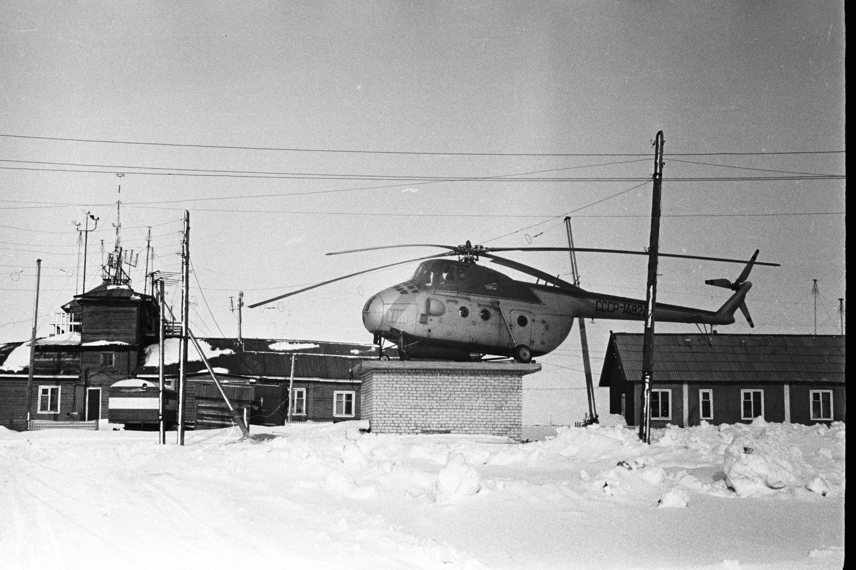 В октябре 1981г. в Нарьян-Маре было сдано в эксплуатацию деревянное здание аэровокзала, перед которым был установлен Ми-4 №14820 Фото. Предположительно, памятник простоял до 1993г. (в июне 1993г. открылось новое здание аэровокзала). |