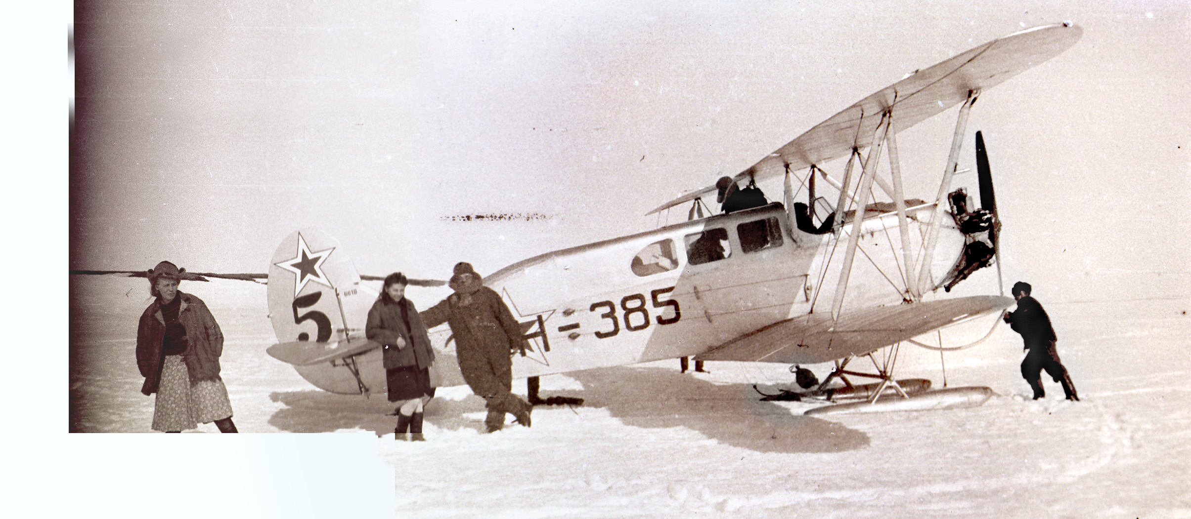 Приказ УПА №8с от 29 марта 1946г. "О закреплении самолётов за Авиагруппами УПА" Принятые на эксплуатацию Управлением ПА самолёты закрепить за Авиагруппами и передать на их баланс: 1. Московская АГОН: ... По-2С №0018, Н-385; ... Из Отчёта о работе Игарской Авиагруппы ГУСМП за 1-е полугодие 1946г.: На 1 июля 1946г. Игарская АГ имеет на эксплуатации 18 самолётов. Из них: 5 – тяжёлого типа и 13 – лёгкого. ... 12 самолётов С-2 санитарного типа: ... Н-385 (МАГОН, самолёт прикомандирован к Игарской авиагруппе), ... На 10 января 1947г. Игарская авиагруппа, неисправный. На 10 сентября 1948г. Игарская авиагруппа: По-2 Н-385 Ломоносово, исправен. Арктика, вторая половина 1940-х: Фото Из приказа начальника УПА №5с от 24 января 1951г. "О закреплении самолётов ПА за авиагруппами УПА": В целях упорядочения учёта СМП УПА, приказываю: Числить на балансе авиагрупп на 1 января 1951г. самолёты в следующем порядке: ... П.2. Игарская авиагруппа: Самолёты По-2 (39 шт.): ... Н-385, №0018 ... На 1 декабря 1951г. Игарская авиагруппа: По-2 Н-385 Игарка, исправен. (и на 1 августа 1952г.) |