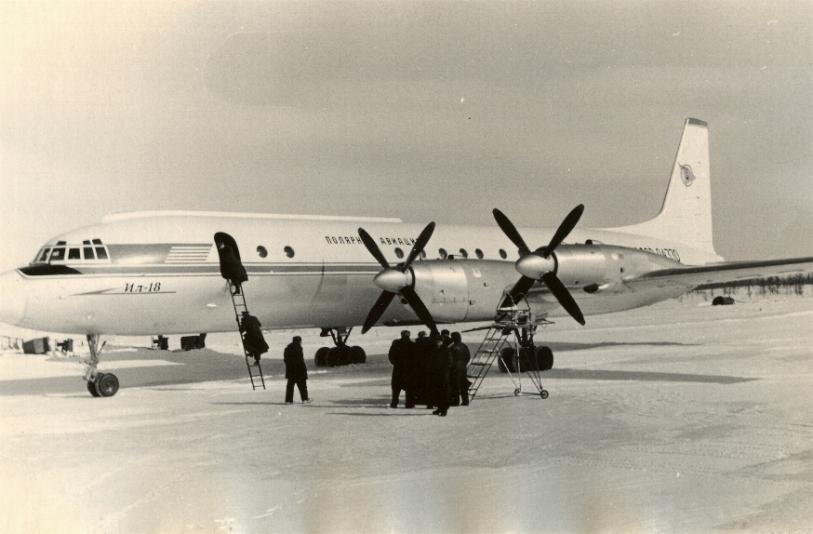 Салон на 89 пассажиров, позже был переоборудован на 95 пассажиров. Первый Ил-18 в Полярной Авиации Фото 7-16 апреля 1959г. совершён первый полёт на самолёте Ил-18 в Арктику. Экипаж Московского ОАО ПА: к/к Майоров Б.М., п/и Ильин А.Д., шт. Берцинский А.С., б/инж. Пишков Н.Н, б/м Лаврентьев С.С., б/р Меньшиков В.В, электротехник Колчанов В.Е, а/тех Голубев Л.И., эл/тех Оболенский Ю.С. На 1 ноября 1963г. - 1 ремонт. |