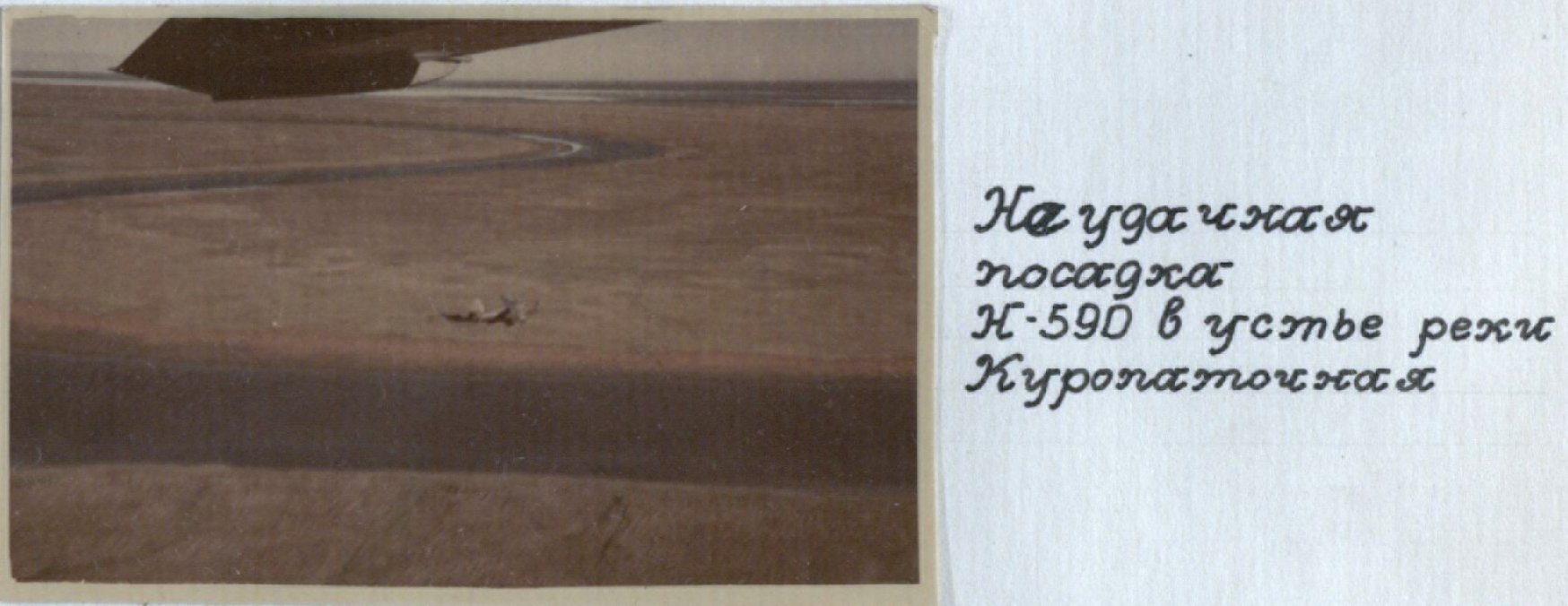 1952г. - вынужденная посадка в устье реки Куропаточная (приток реки Колымы, на севере Якутской АССР) Фото 17 марта 1956г. - поломка самолёта при выполнении посадки на дрейфующую станцию СП-5 (в результате регулярного превышения допустимого полётного веса при полётах по обслуживанию станции). |